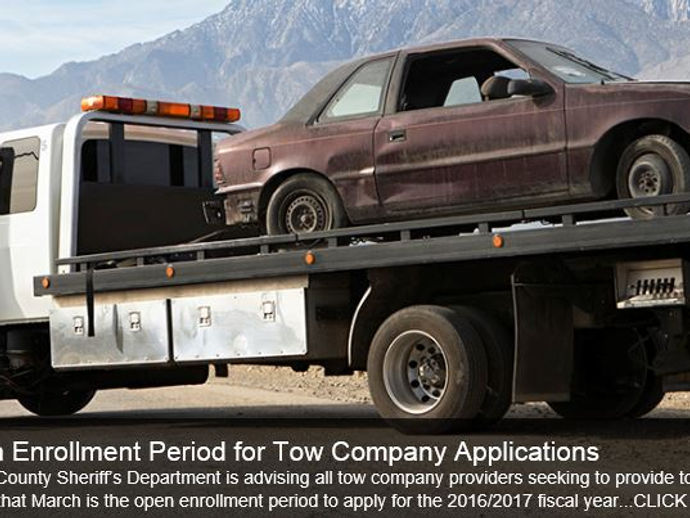 The San Bernardino County Sheriff’s Department is advising all tow company providers seeking to provide tow services for the Sheriff's...